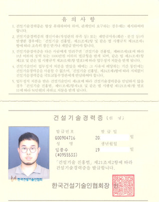 다양한 현장 경험과 보다 전문적인 인테리어 공사마감을 고객님께 제공해 드리기위해 한국건설 기술인협회에서 발급하는 건설기술경력증을 소지하고있습니다.