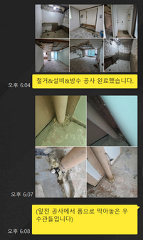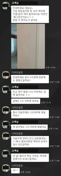 인테리어 공사 진행에 있어서 고객님과 소통을 위해 단체 카톡방을 만들어 그날그날 현장에서의 특이사항을 고객님께 안내하고 있습니다.